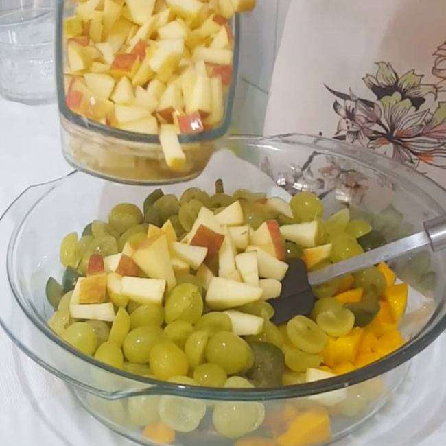 Salada de maionese com legumes cozidos e ma